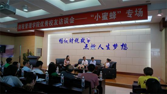 2014年6月19日下午,小蜜蜂公司总经理董立新,培训经理邵华,优秀员工崔奚宁、王丹,受到学院的特别邀请,参加了由财税管理学院组织的“畅谈财税故事,点燃人生梦想”优秀毕业生座谈会。